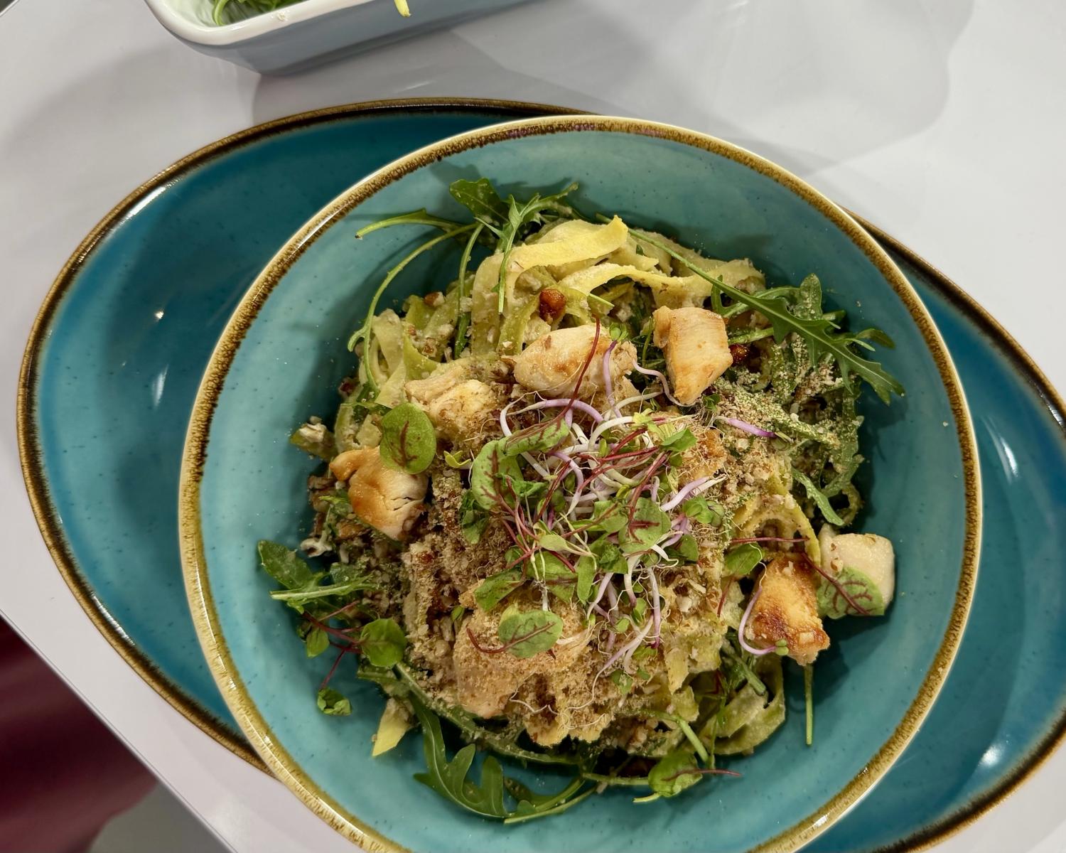 Krémové cestoviny bez smotany, ale s plnou chuťou. Kešu omáčka dodá jemnosť a zdravé tuky, kuracie mäso kvalitné bielkoviny a rukola ľahkosť aj podporu trávenia. Ideálne jedlo na obed alebo po tréningu – zasýti a dodá stabilnú energiu.