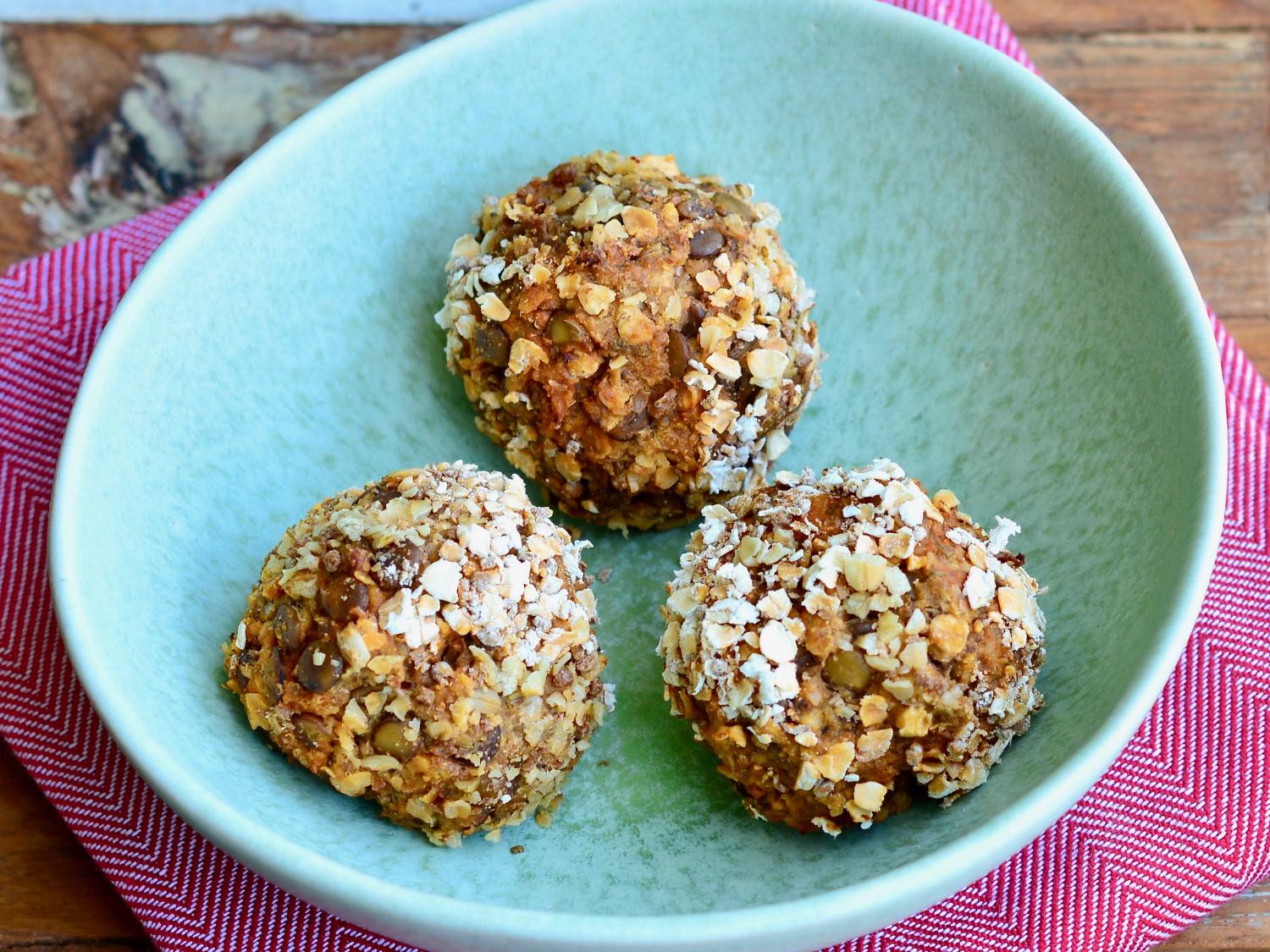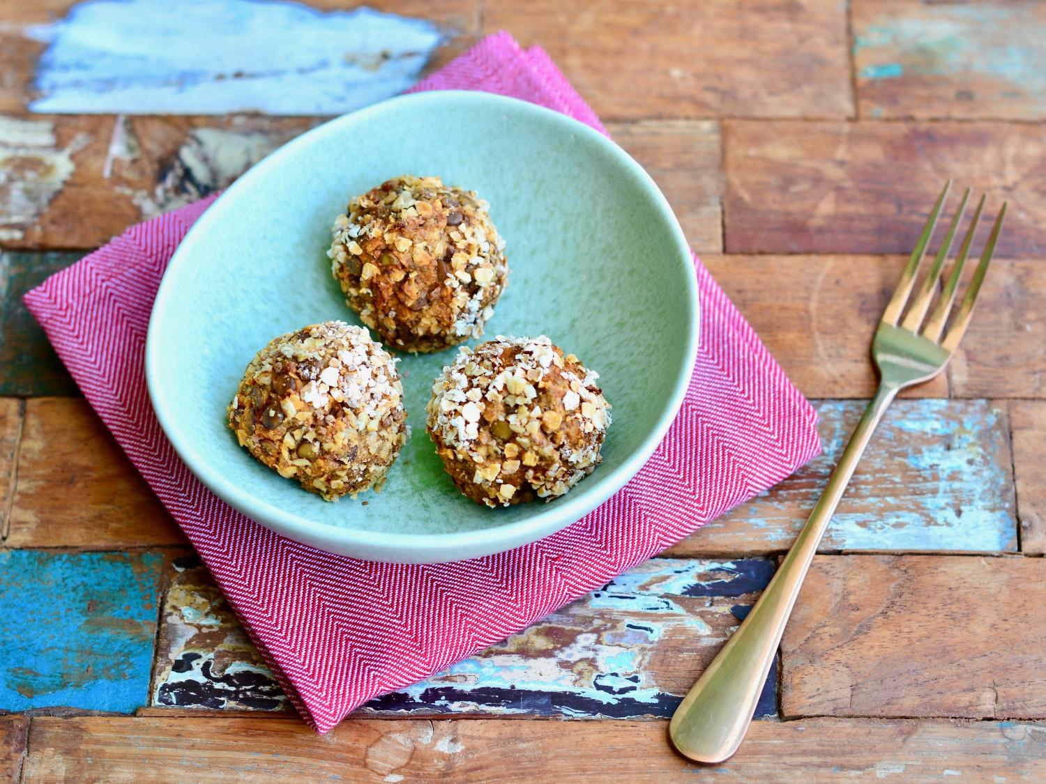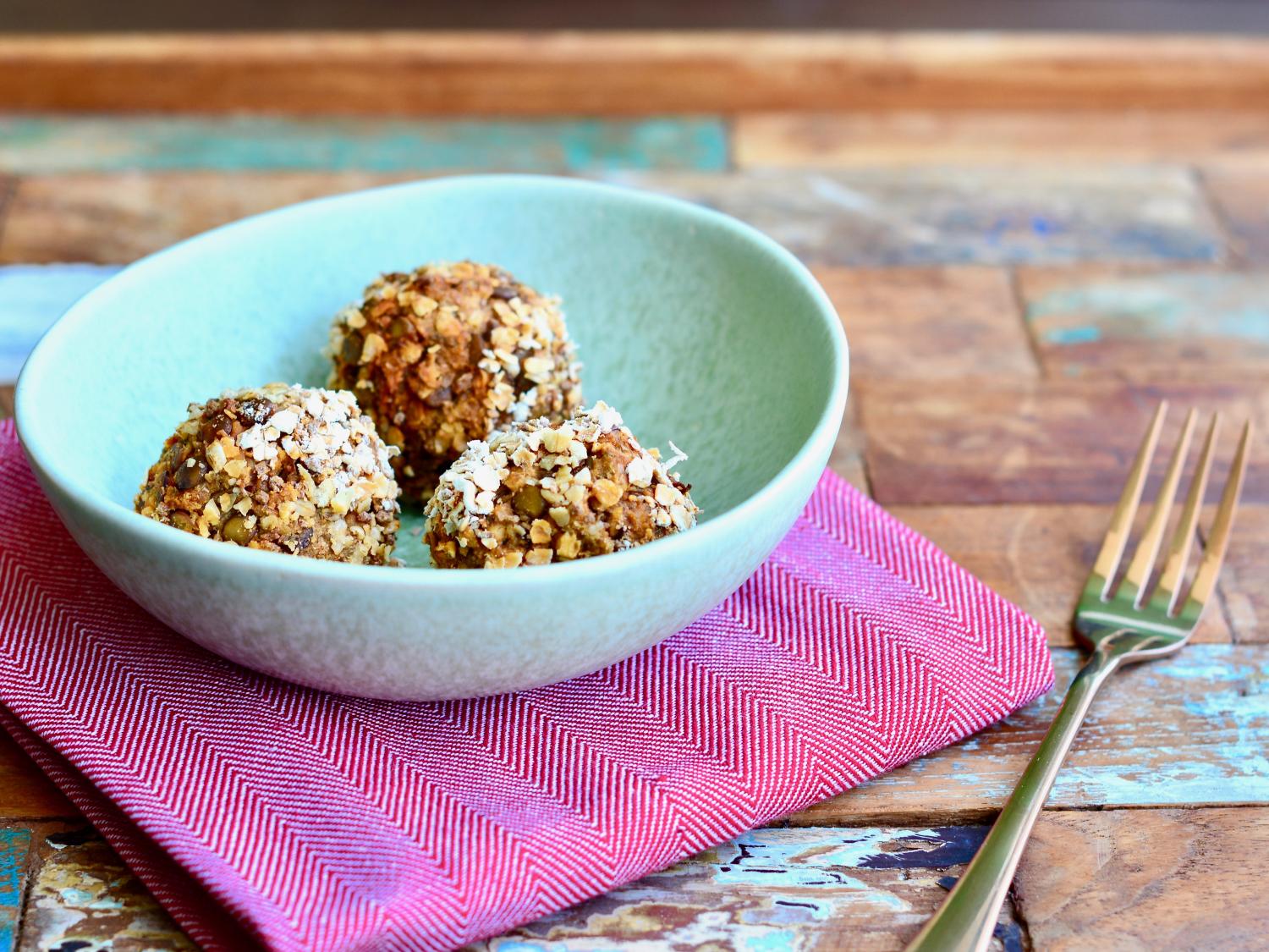 Zbožňujem VEGE guľky ako obed do práce, sú ľahko stráviteľné a dajú sa pripraviť na všetky varianty. Sú výbornou obmenou mäsových jedál alebo pre vegetariánov môžu byť plnohodnotným jedlom na každý deň. Ja ich pripravujem z rôznych strukovín, z tofu alebo syra. Tieto sú z hnedej šošovice, ako príloha sa k nim výborne hodí zeleninové pyré (z batátov, z koreňovej zeleniny, hráškové alebo z červenej papriky). Tahini pasta je dobrovoľná surovina, ak ju nedáte, použite 1 PL olivového oleja.